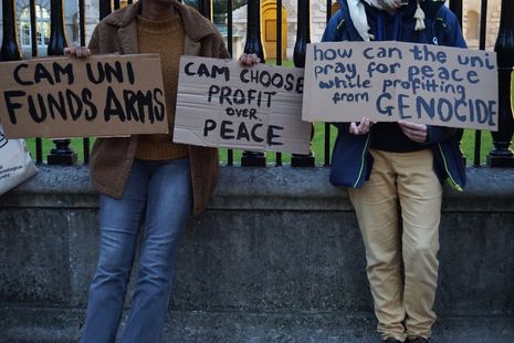 剑桥支持巴勒斯坦(C4P)的活动人士举出横幅,指责该大学在武器投资上“虚伪”,并呼吁他们“切断与欧洲最大国防承包商 BAE Systems 的关系”。