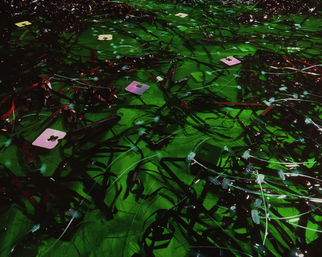 这种对当代问题的关注并非偶然。策展人菲利普·林德利教授希望这次回顾展能在蒂姆几十年来的作品中找到一条共同的线索,并举办一场能引起当今学生共鸣的展览。蒂姆在 80 年代末和 90 年代初广泛关注塑料污染的威胁,菲利普认为这个主题会立即引起人们的注意。 石化3乍一看,是一种脏兮兮的荷花池,翠绿中夹杂着淡粉色。黑色的丝带在水中流动。池塘杂草?两栖动物从黑暗的深处蠕动着出来?图像呈现出一团沼泽般的活力,明显是生物性的。但再靠近一步,场景就会变得清晰起来。百合花变成了粉红色的塑料标签,水生植物显示出自己是合成的,是人类材料的一团混乱。在你的眼前,这张照片变成了塑料垃圾的聚集体,它发出的绿光似乎是半水生生物脉动的标志,但却变得有毒。